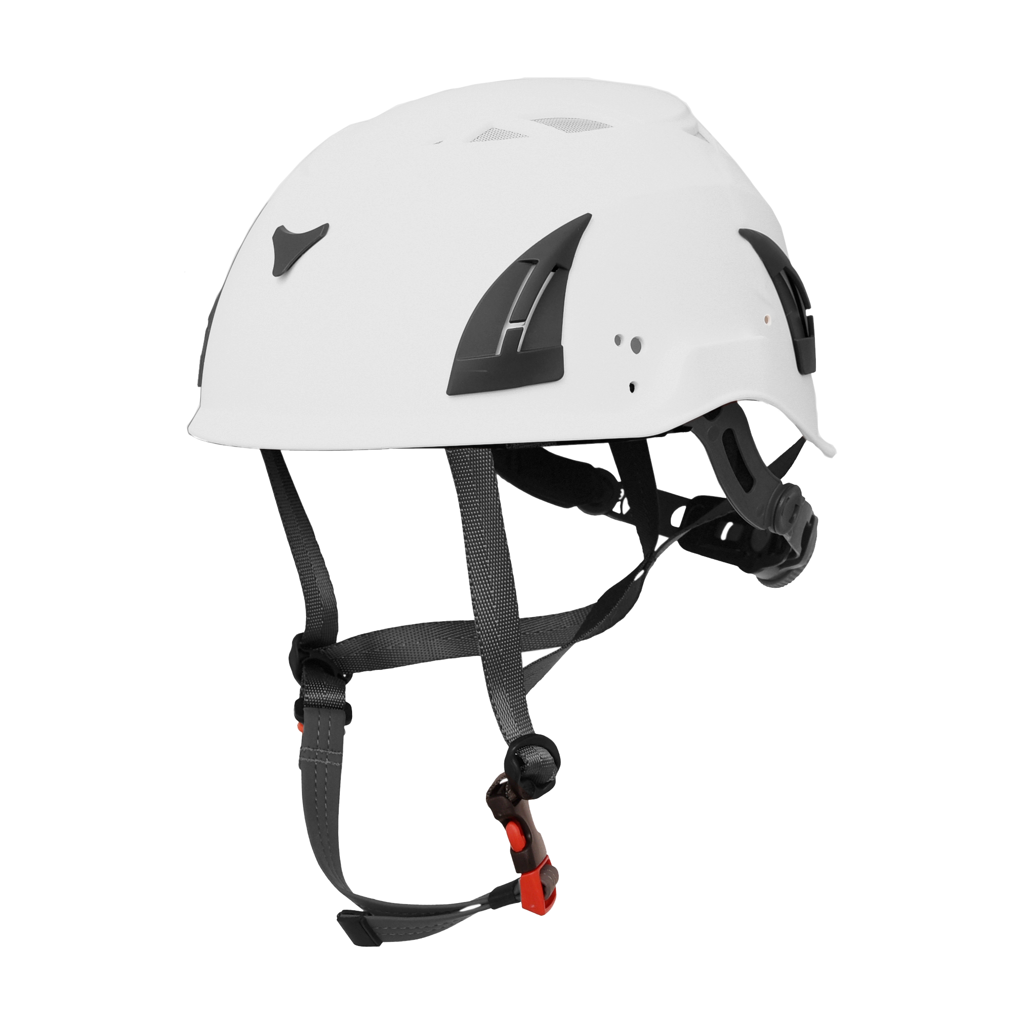 - Befestigungspunkte: 1 dorsaler D-Ring (A), 1 D-Ring am dorsalen Verlängerungsgurt (A) und 1 sternaler D-Ring (A) für das Absturzsicherungssystem, 1 D-Ring an jeder Schulter zur Rettung